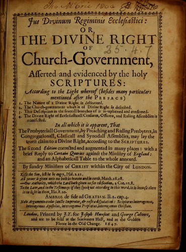 Excerpt from Jus Divinum Regiminis Ecclesiastici or The Divine Right of Church Government (1646) by the London Provincial Assembly.