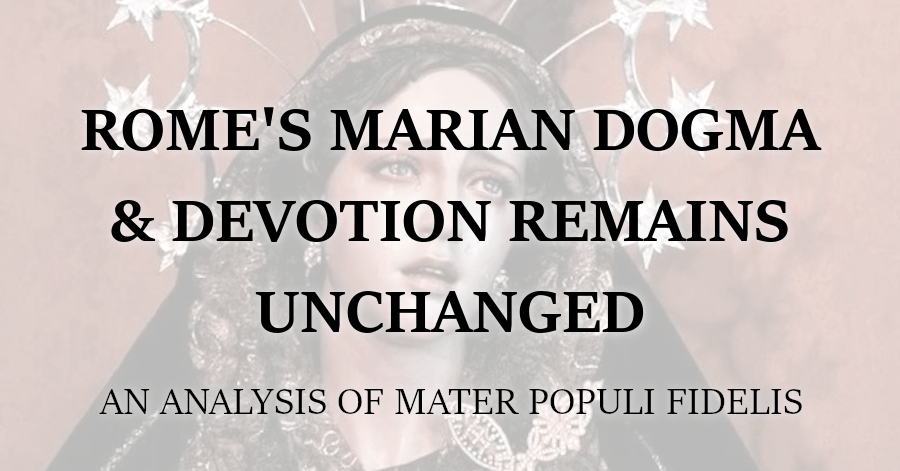 In addition to its primary aim “to deepen the proper foundations of Marian devotion,” a secondary goal is to be “a particular ecumenical effort.” Since Vatican II, Rome has been more than happy to be ecumenical, as long as that means Rome remains the supreme head of the church and can magisterially dictate doctrine and piety to everyone else. Commensurate with its ecumenical agenda, MPF uses language meant to resonate with Protestants and Evangelicals: it says its approach has a “prominent biblical imprint,” it appeals to Scripture (albeit eisegetically), and it frames Marian piety as a “symbolic expression of an evangelical attitude of trust in the Lord.” MPF frames its task as keeping a “necessary balance… between Christ’s sole mediation and Mary’s cooperation in the work of salvation,” a formula likely designed to reassure critics while simultaneously retaining Marian dogmas & practices of piety that functionally augment or participate in Christ’s Mediatorship. The statement is a calculated Public Relations move to gain more followers and allies, while still not repudiating Rome’s idolatry of Mary.